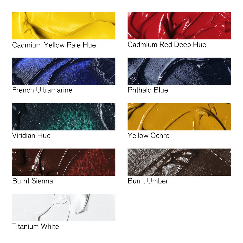 Contenu du set:Contient: 1 x 37ml Blanc de Titane, 1 x 75ml Médium Peinture à l’Huile Liquin Original, 2 x Pinceaux Winton en soie de porc, 1 x brochure d’instructions, 8 x 21ml Huile Winton : Imitation Cadmium Jaune Pâle, Imitation Cadmium Rouge Foncé, Outremer Français, Bleu de Phtalo, Imitation Viridien, Ocre Jaune, Terre de Sienne Brûlée, Terre d’Ombre Brûlée