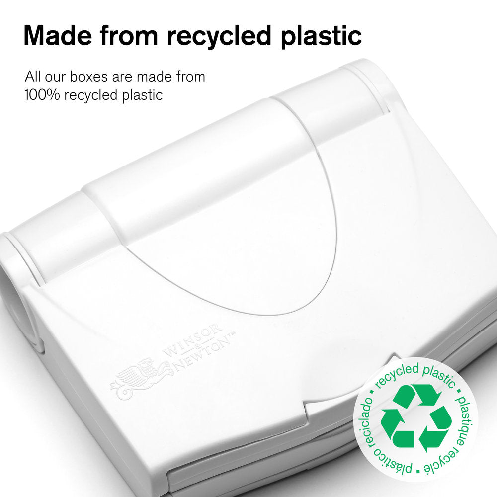 Découvrez 12 aquarelles Cotman fabriquées avec des pigments de haute qualité dans un set de voyage. Ce set est idéal pour la peinture aquarelle en plein air, particulièrement pour des mélanges de couleurs approfondis. Le Set de voyage extérieur s'ouvre pour révéler un pinceau de voyage, une bouteille à eau de 60 ml, 2 pots à eau clipsables et 3 palettes avec plusieurs zones de mélange. Le Set de voyage extérieur s'appelait auparavant le Terrain Plus.