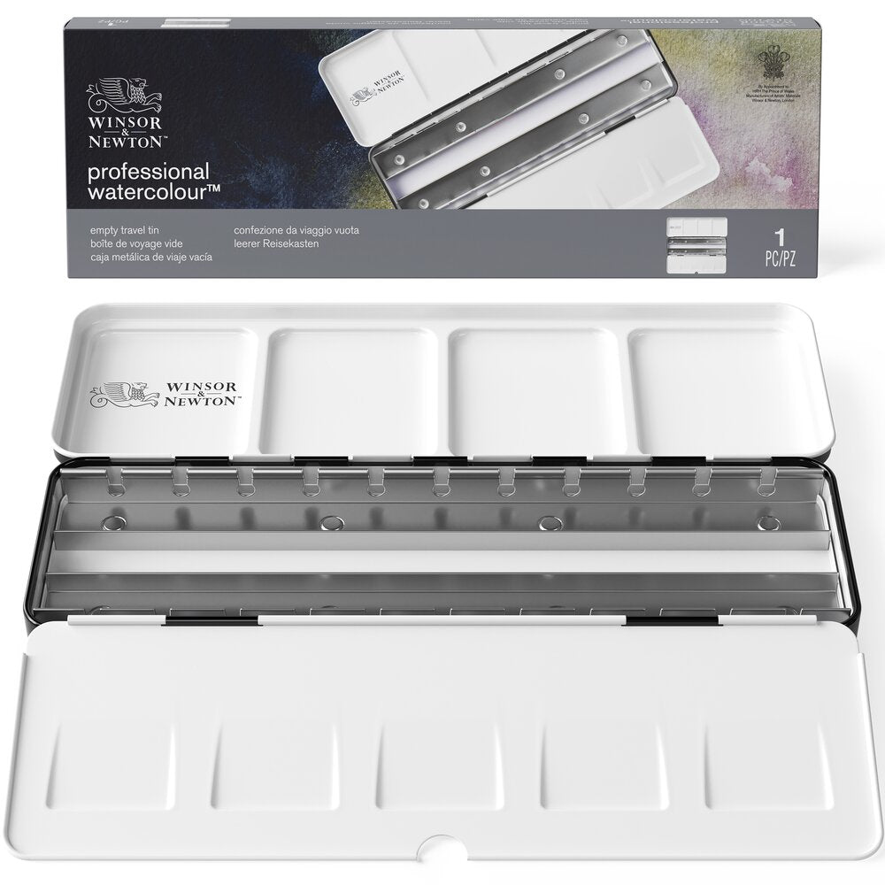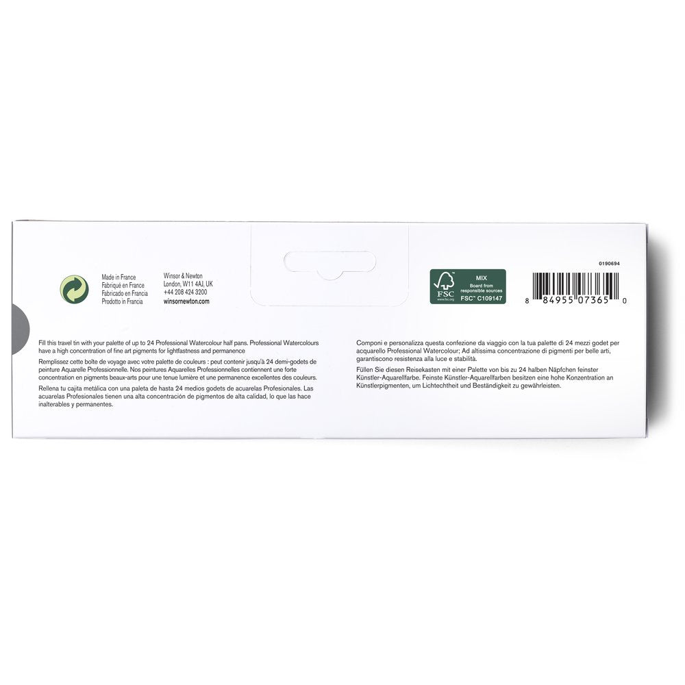 Remplissez cette boîte avec votre palette de 24 demi-godets d'aquarelle professionnelle. Les aquarelles professionnelles sont riches en pigments pour une résistance à la lumière et une tenue optimales.