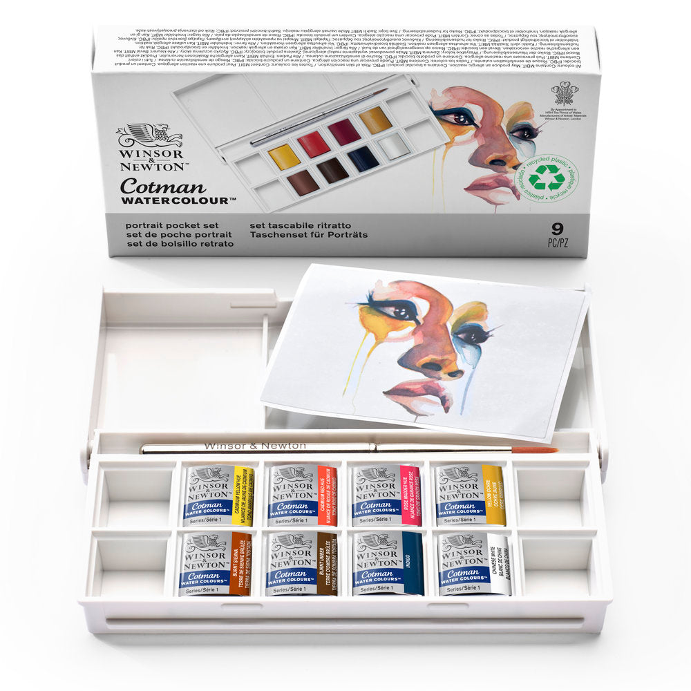 Peignez des portraits avec ces 8 aquarelles Cotman soigneusement sélectionnées par des artistes professionnels. Fabriquées avec des pigments beaux-arts de haute qualité dans un format de poche, elles incluent un pinceau de voyage et de l'espace pour 4 couleurs supplémentaires.
