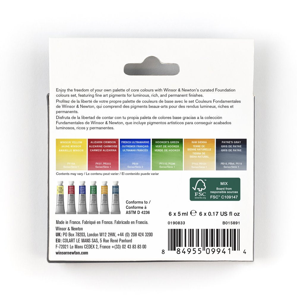 Contenu du set:Tubes 6x5ml: Terre de Sienne Naturelle, Jaune Winsor, Cramoisi Alzarine, Vert de Hooker, Outremer Français, Gris de Payne
