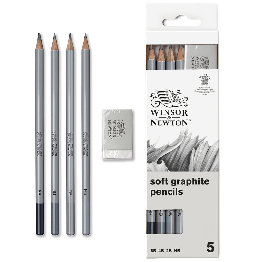 Contenu du set:Crayons Graphite - HB, 2B, 4B, 8B, gomme