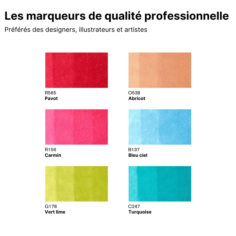 Des couleurs spécifiquement sélectionnées pour se compléter et apporter éclat et flexibilité à votre palette. Le set Tons Moyens contient les couleurs : Abricot, Pavot, Carmin, Bleu Ciel, Vert Lime et Turquoise.