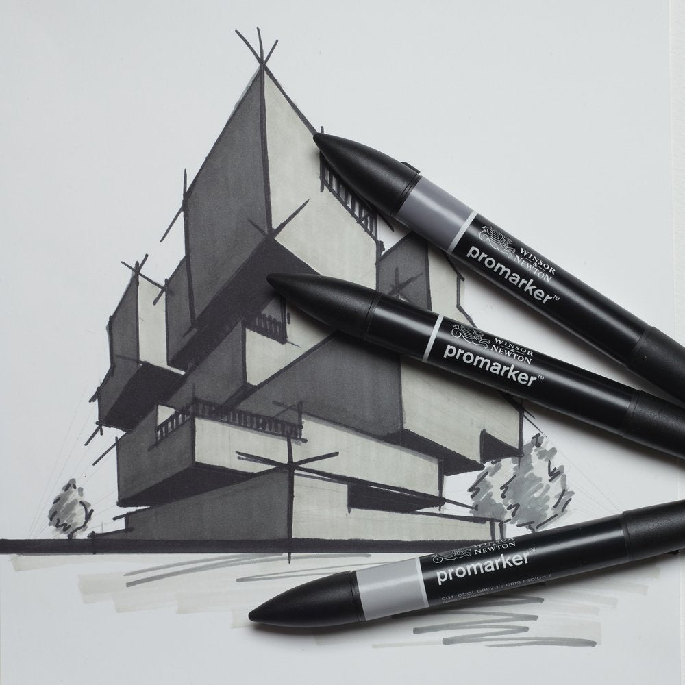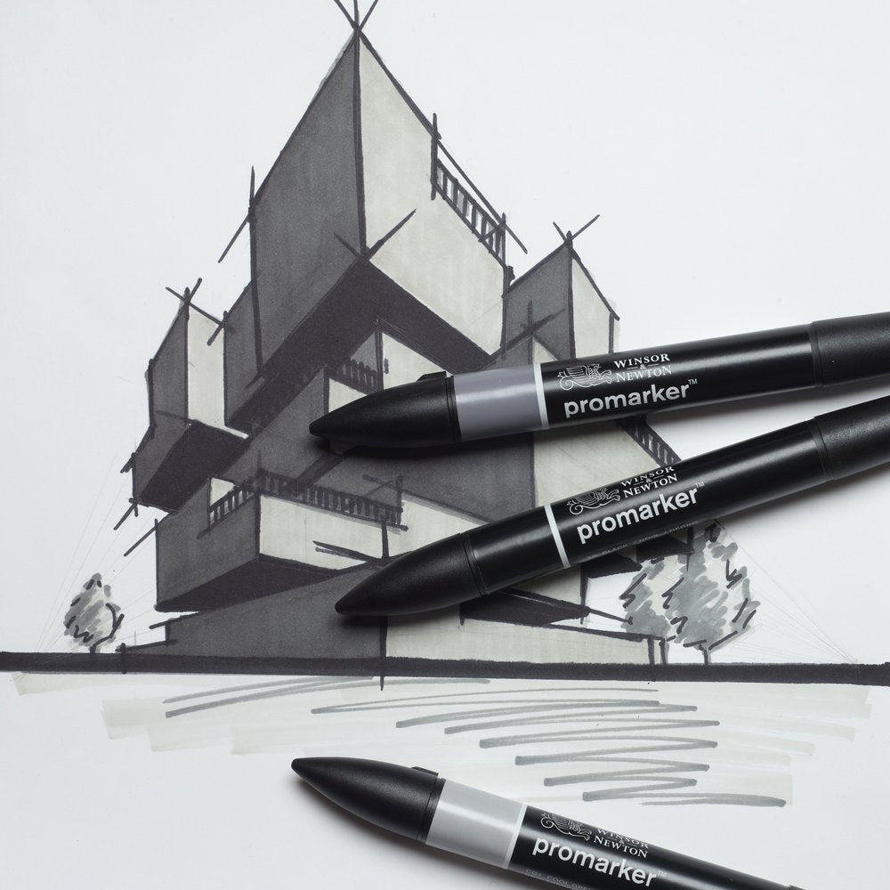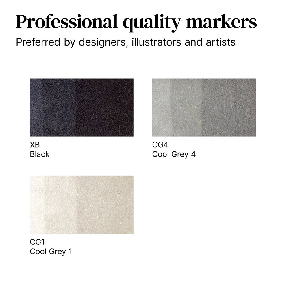 Tons gris - Encre translucide à base d'alcool, marqueurs à double pointe ; petite pointe ogive et pointe large biseautée.