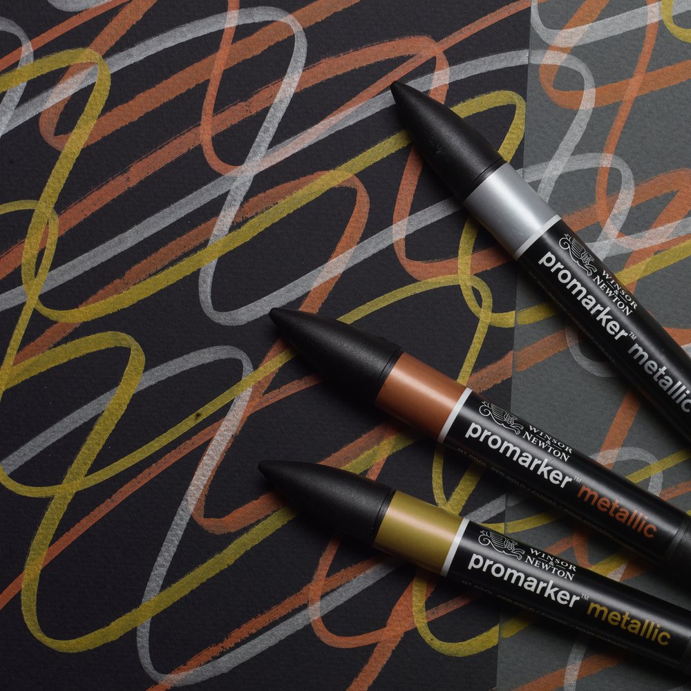 Tons métalliques - Encre translucide à base d'alcool, marqueurs à double pointe ; petite pointe fine et large pointe biseautée.