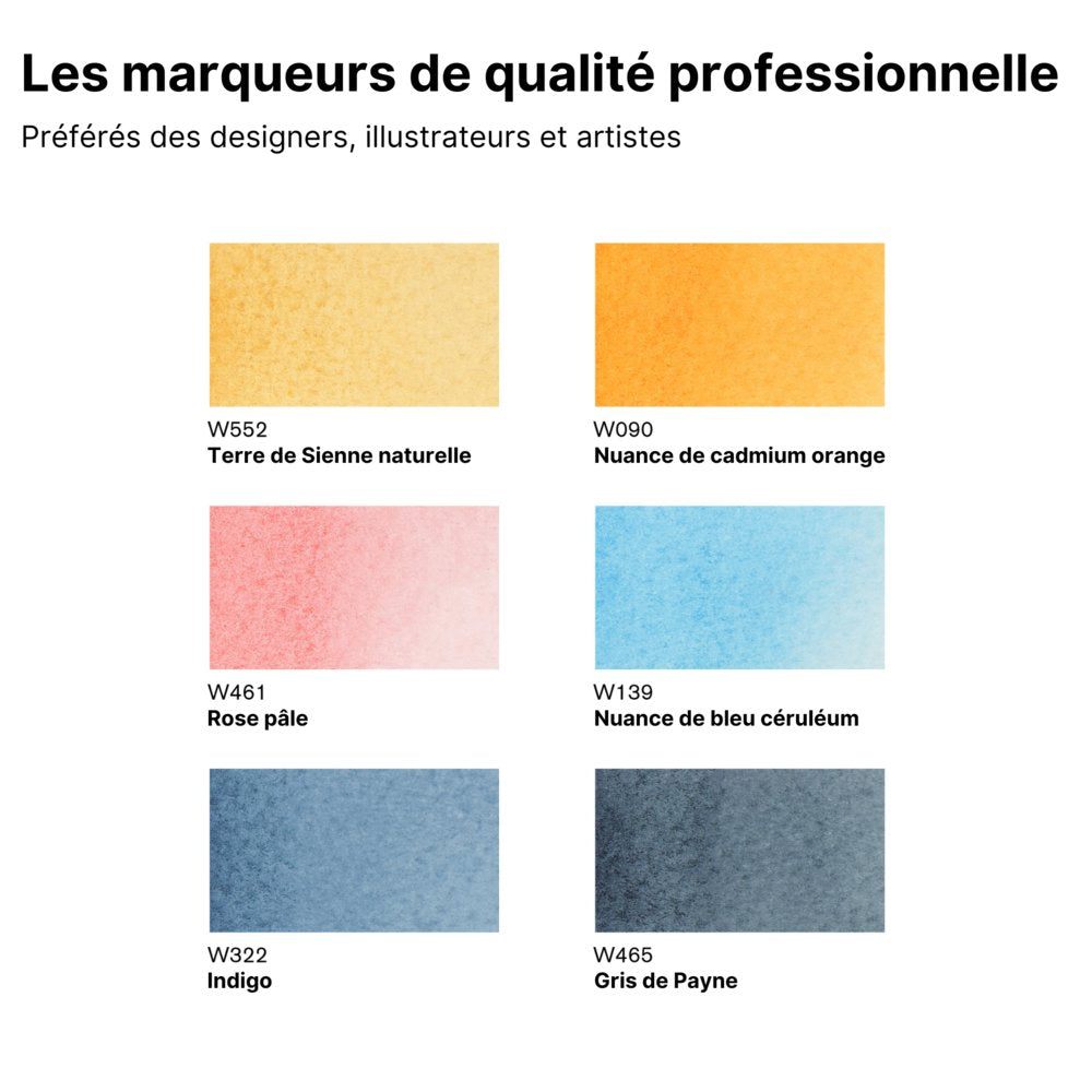 Créez de superbes effets aquarelle avec le marqueur aquarelle de Winsor & Newton, hautement pigmenté et résistant à la lumière. Double pointe : une pointe pinceau flexible et une pointe fine. Pour de meilleurs résultats, utilisez avec le papier pour aquarelle Winsor & Newton. Rangez les marqueurs à l'horizontale. Pinceau non inclus.