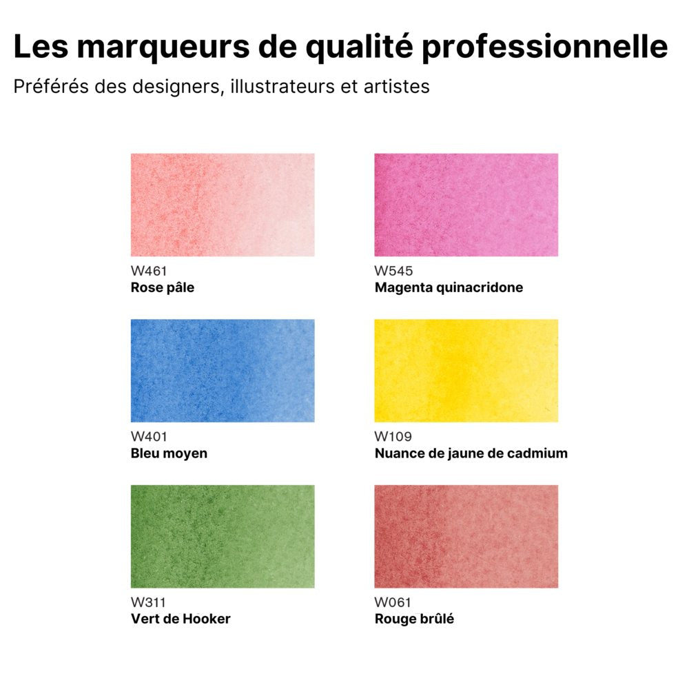 Créez de magnifiques effets d'aquarelle avec le marqueur aquarelle de Winsor & Newton, hautement pigmenté et résistant à la lumière. Double pointe : une pointe pinceau flexible et une pointe fine. Pour de meilleurs résultats, utilisez-le avec le papier pour aquarelle Winsor & Newton. Rangez les marqueurs à l'horizontale. Pinceau non inclus.