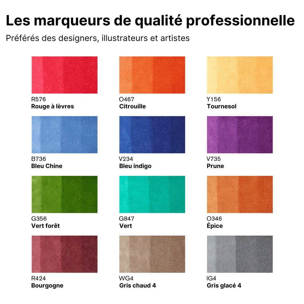 Marqueurs à base d'alcool. Double pointe : une pointe biseautée et une pointe fine.