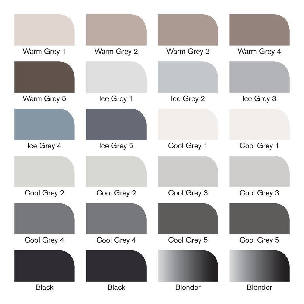 Créez des visuels en jouant sur les tons et des œuvres en niveaux de gris, ou ajoutez de l'ombre et de la définition lorsque vous travaillez en couleur avec cette collection complète de vos tons de gris et de noir Promarker préférés.