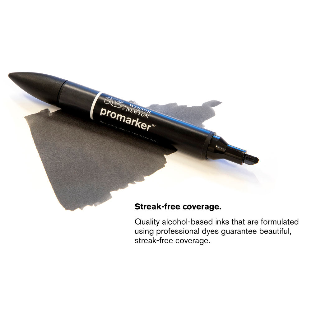 Parfait pour créer des ombres intrigantes pour les objets noirs. Ce marqueur à double pointe est adapté aux artistes polyvalents qui cherchent à obtenir des applications de couleur larges et fines. Son encre non toxique à base d'alcool assure une couvrance lisse et impeccable à chaque utilisation. Essayez de superposer pour varier la profondeur et l'opacité, ou utilisez-le avec le Blender Promarker pour adoucir et fusionner les couleurs.