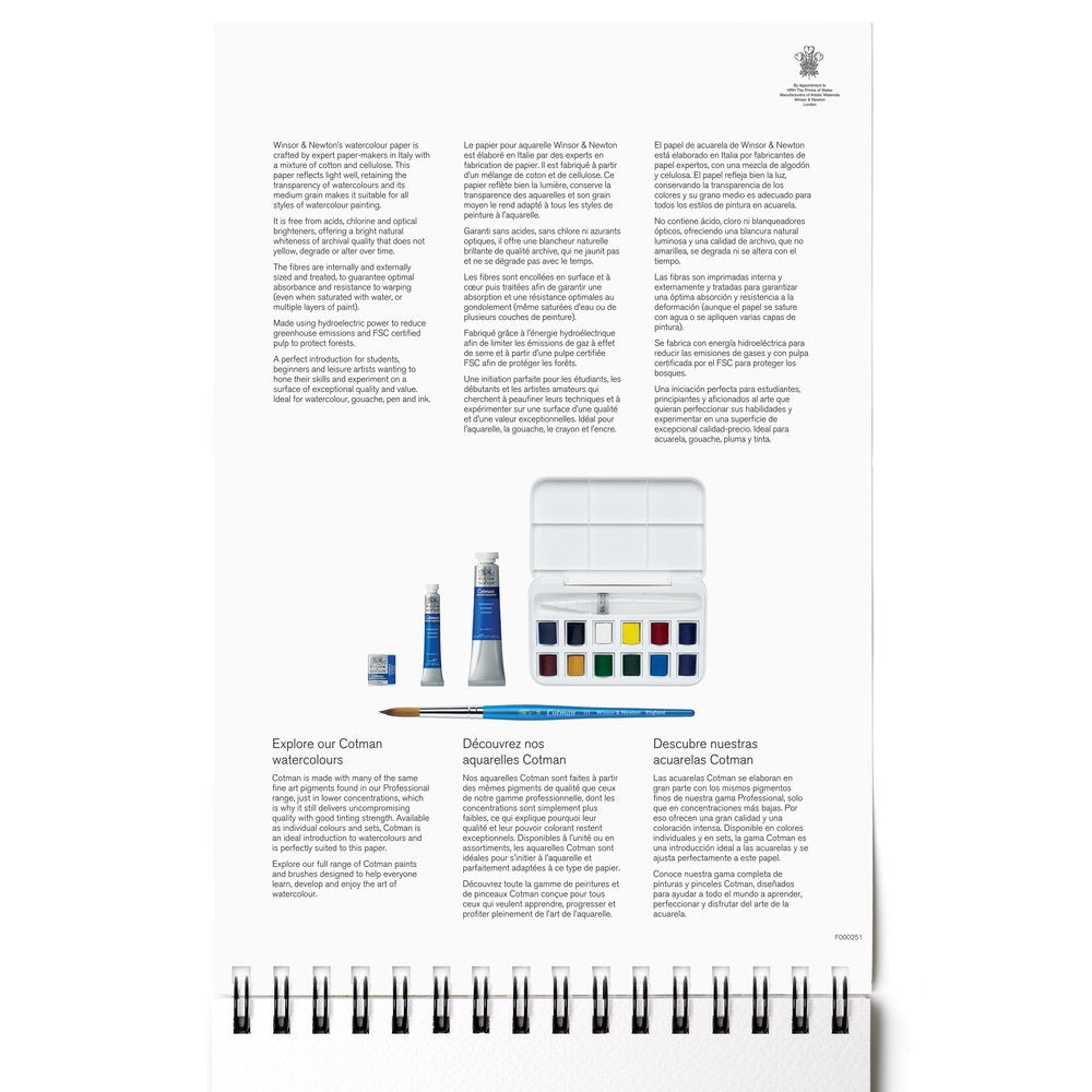Le papier grain fin a un grain moyen avec une accroche moins prononcée que le papier grain torchon et est un papier polyvalent pour les détails ainsi que pour les effets texturés. Formé sur un moule cylindrique traditionnel, notre papier pour aquarelle donne l'impression d'être fabriqué à la main. Tous nos papiers pour aquarelle sont conçus pour résister à la saturation, et ce carnet à spirale est de taille et format idéaux pour peindre en déplacement. Chaque bloc contient 15 feuilles de papier de 300 g/m².