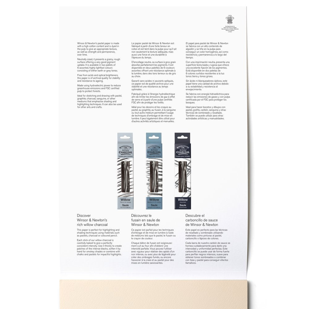 Ce bloc de papier pour Pastel offre un papier de haute qualité, coloré et adapté à l'utilisation avec le pastel, le crayon, le fusain et d'autres outils créatifs. Il existe deux versions des blocs contenant 6 couleurs assorties. Le papier pour pastel Winsor & Newton est sans acide, résistant à la lumière, et présente une surface à grain attrayante d'un côté et une surface plus lisse de l'autre.