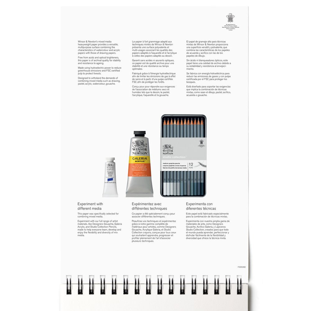 Le papier mixed media de Winsor & Newton est polyvalent et multifonctionnel. Épais et non-absorbant, il combine les caractéristiques des papiers pour aquarelle et pour acrylique avec celles des papiers à dessin. Exempt d'acides et d'azurants optiques, ce papier est de qualité archive pour une stabilité et une résistance au vieillissement. Il est disponible en bloc de papier de 250 g/m², contenant 30 feuilles.