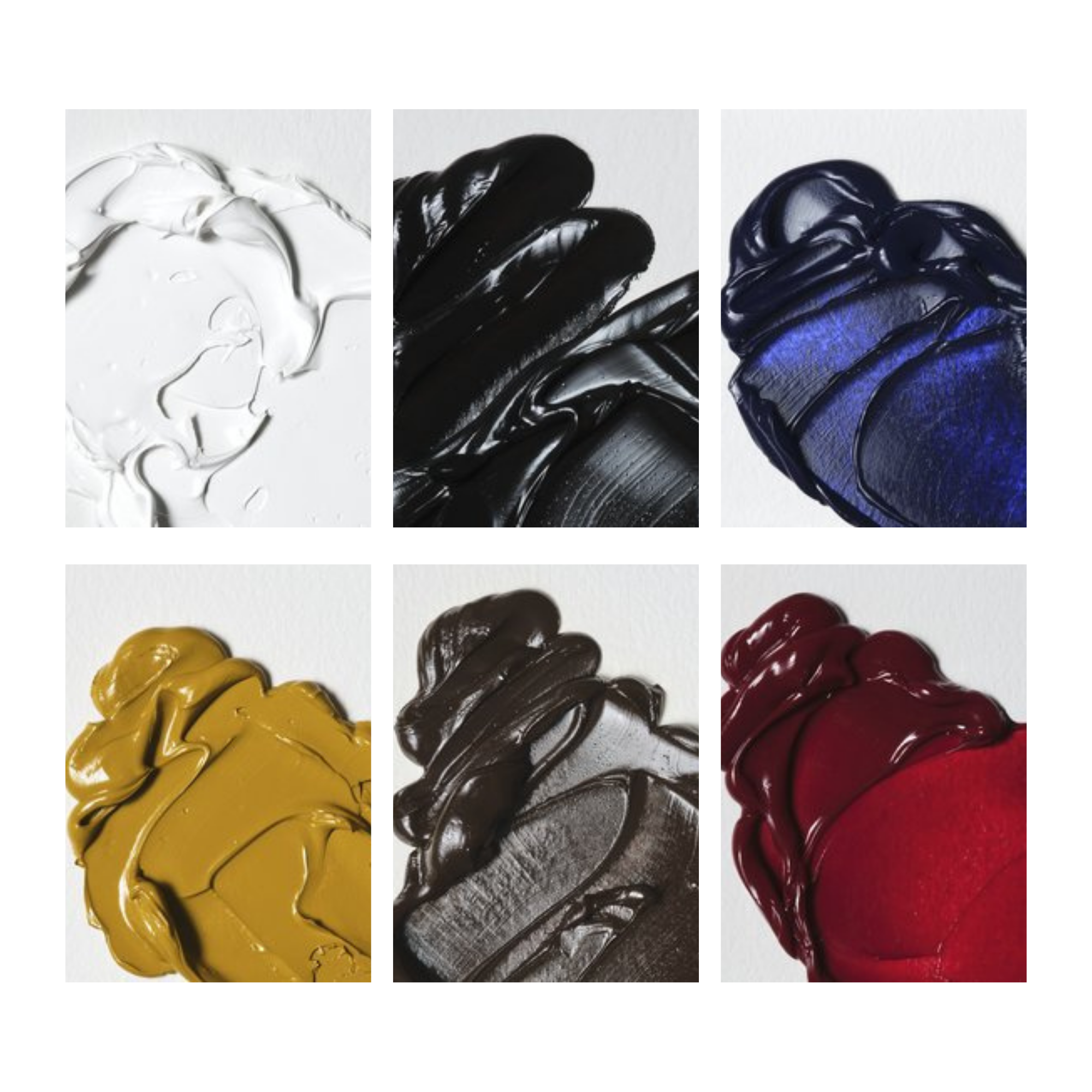 Ce bundle comprend Blanc de titane, Bleu outremer français, Noir d’ivoire, Terre d’ombre brûlée, Ocre jaune et Alizarine cramoisie permanente — parfaits pour créer de la profondeur, mélanger de nouvelles teintes et réaliser des œuvres expressives. Renouvelez vos essentiels et faites de cette année celle de créations à l’huile audacieuses.